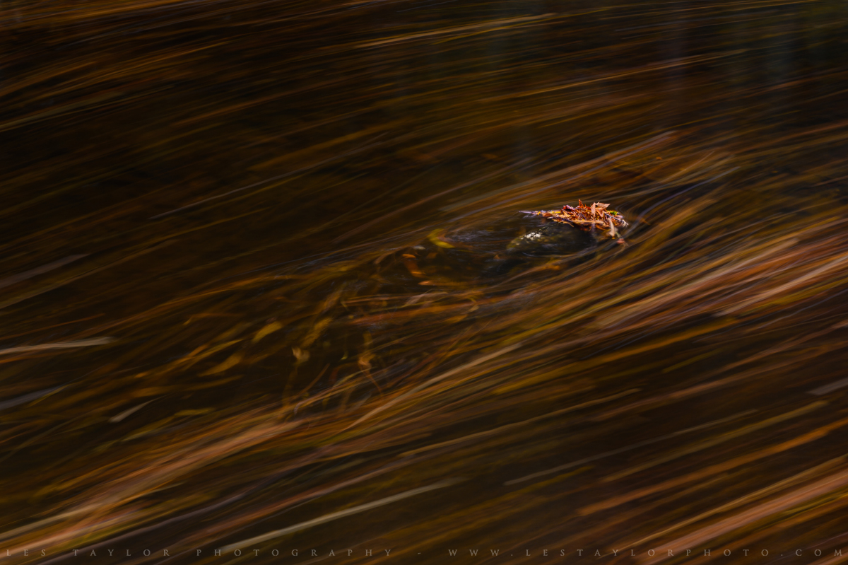 Thanks to the strong winds and rain the night before, many of the leaves had fallen off the trees and into the water of the rivers and streams around the park, so I also took some time to explore this scenery during my second day. I tried a number of long exposure shots which makes for an interesting effect in the water. Most photographs of water benefit from a polarizing filter (I use a Lee Landscape Polarizer) but this scene especially does as it allows for the color of the leaves in the water to really pop, which helps emphasize their movement in an image like this.